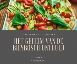 Wij sluiten de avond af met een Italiaans diner, aan lange sfeervol gedekte tafels. Geserveerd worden mooie salades, anti pasti en verschillende pasta’s. Samen praten we na over de middag en gaan we verbindingen aan die nét even verder gaan dan bij een simpele netwerkborrel want ‘eten verbindt’.
